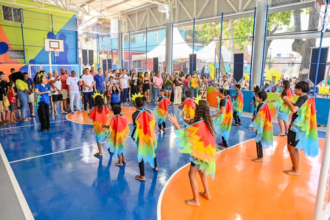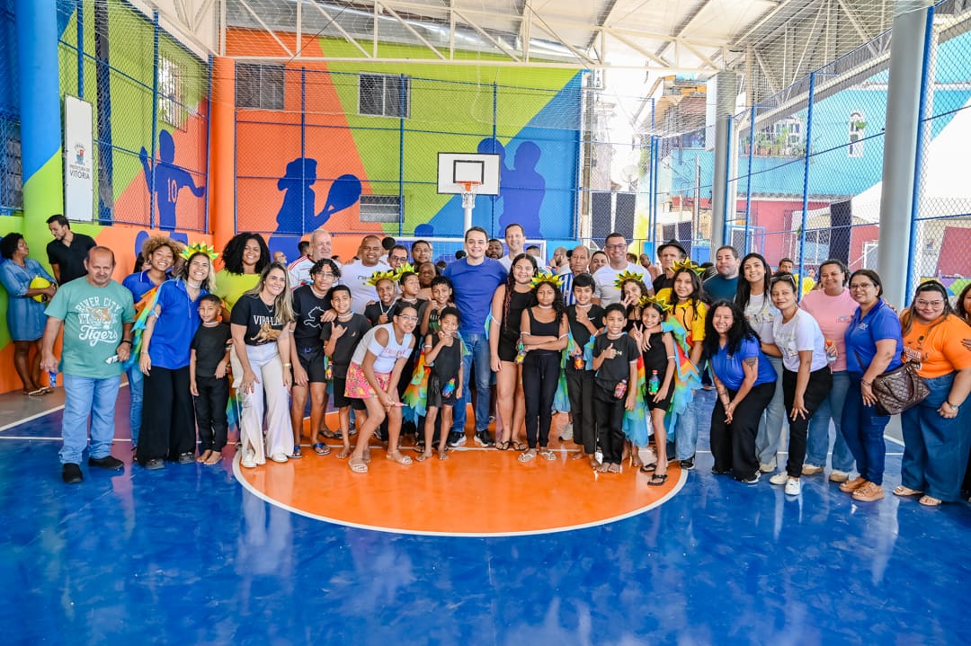 A inauguração da quadra também contou com apresentação de crianças e do grupo de capoeira, além da Banda da Guarda de Vitória que animou a festa.