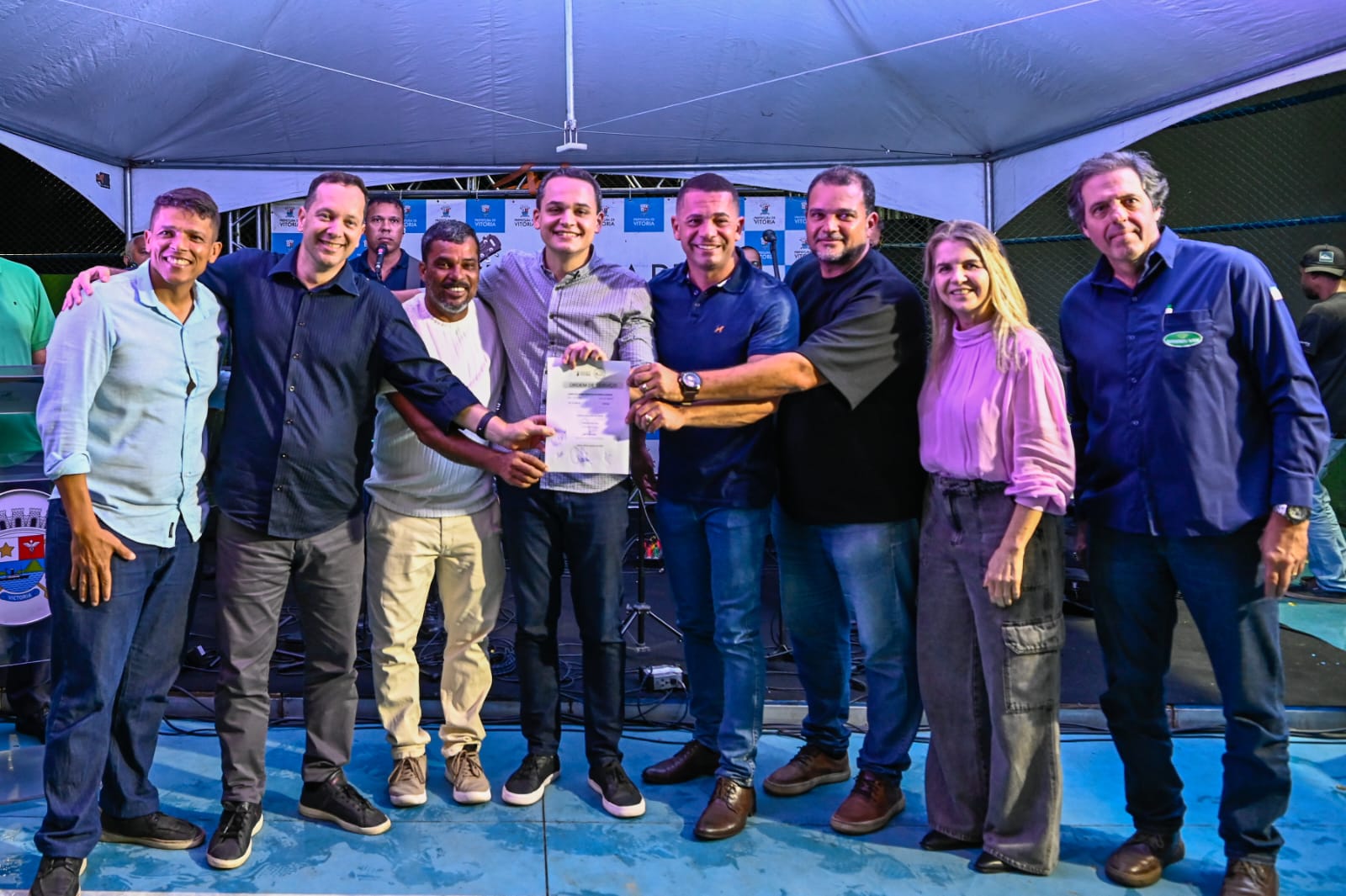 A noite desta quinta-feira (09) foi de comemoração para a comunidade de Mario Cypreste, com a assinatura da ordem de serviço para a construção do campo de grama sintética do bairro. O evento ocorreu na Praça Luiza Pereira.