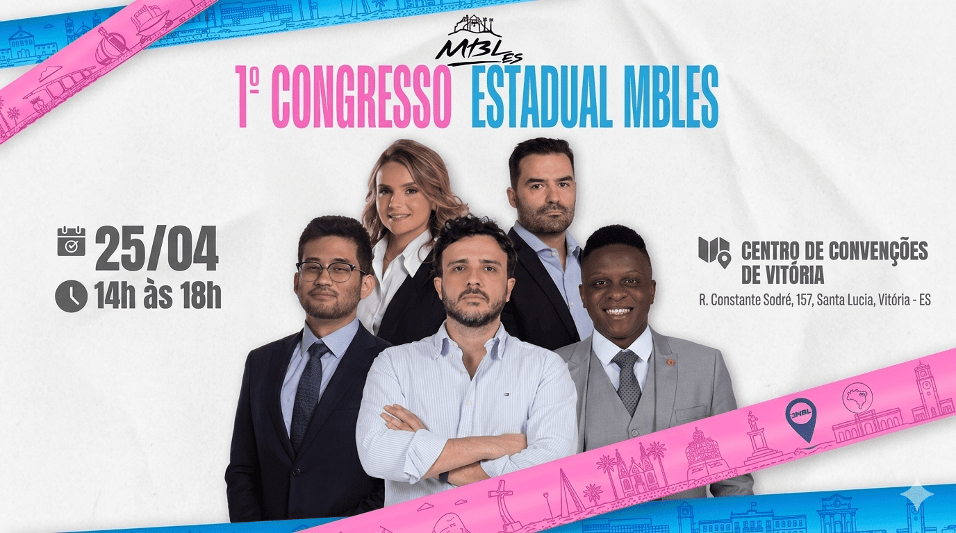 O MBL-ES (Movimento Brasil Livre – Espírito Santo) realiza no dia 25 de abril o 1º Congresso Regional do MBL em Vitória, capital do Espírito Santo. O evento será das 14h às 18h no Centro de Convenções de Vitória no bairro Santa Lúcia. A reunião marca um momento estratégico para o grupo que busca a oficialização do partido “Missão” junto à Justiça Eleitoral.