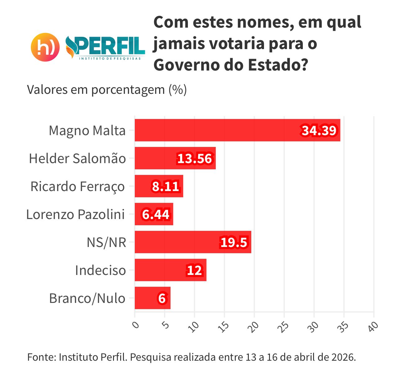 A pesquisa foi realizada com 1.800 entrevistados em todo o Espírito Santo, contemplando homens e mulheres a partir de 16 anos, com coleta de dados realizada entre os dias 12 e 15 de abril de 2026.