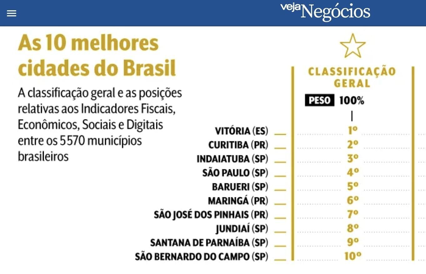 Publicação da Veja destaca que, quando ele assumiu, em 2021, havia pouco mais de R$ 6 milhões em caixa, mas que, hoje, já são mais de R$ 2 bilhões em investimentos na cidade. Pondera, ainda, a extinção de 700 cargos comissionados e a renegociação de contratos.